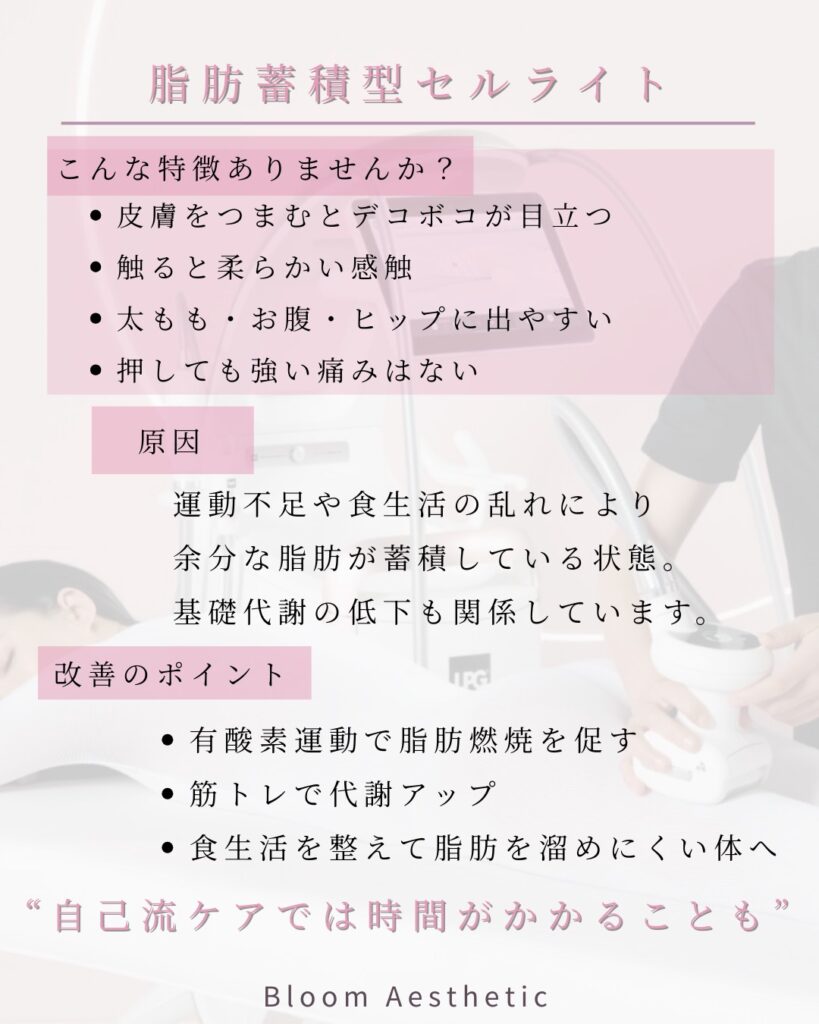 ホーム » お知らせ・ブログ » セルライトには種類がある?タイプ別の原因とケア方法❤️🔥