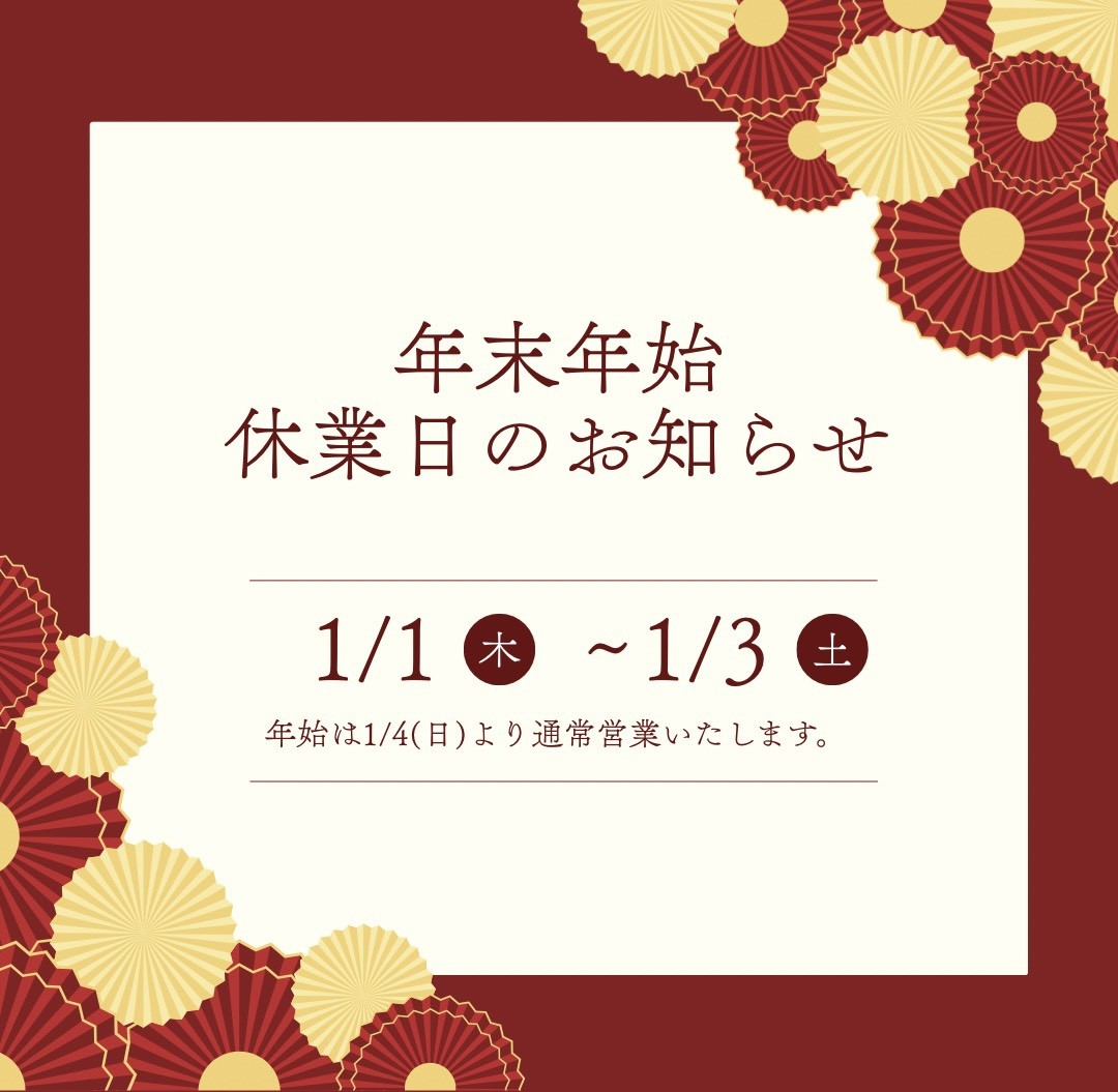 年内の最終営業日は12月31日(水)、新年は1月4日(日)より通常営業となります🎍
